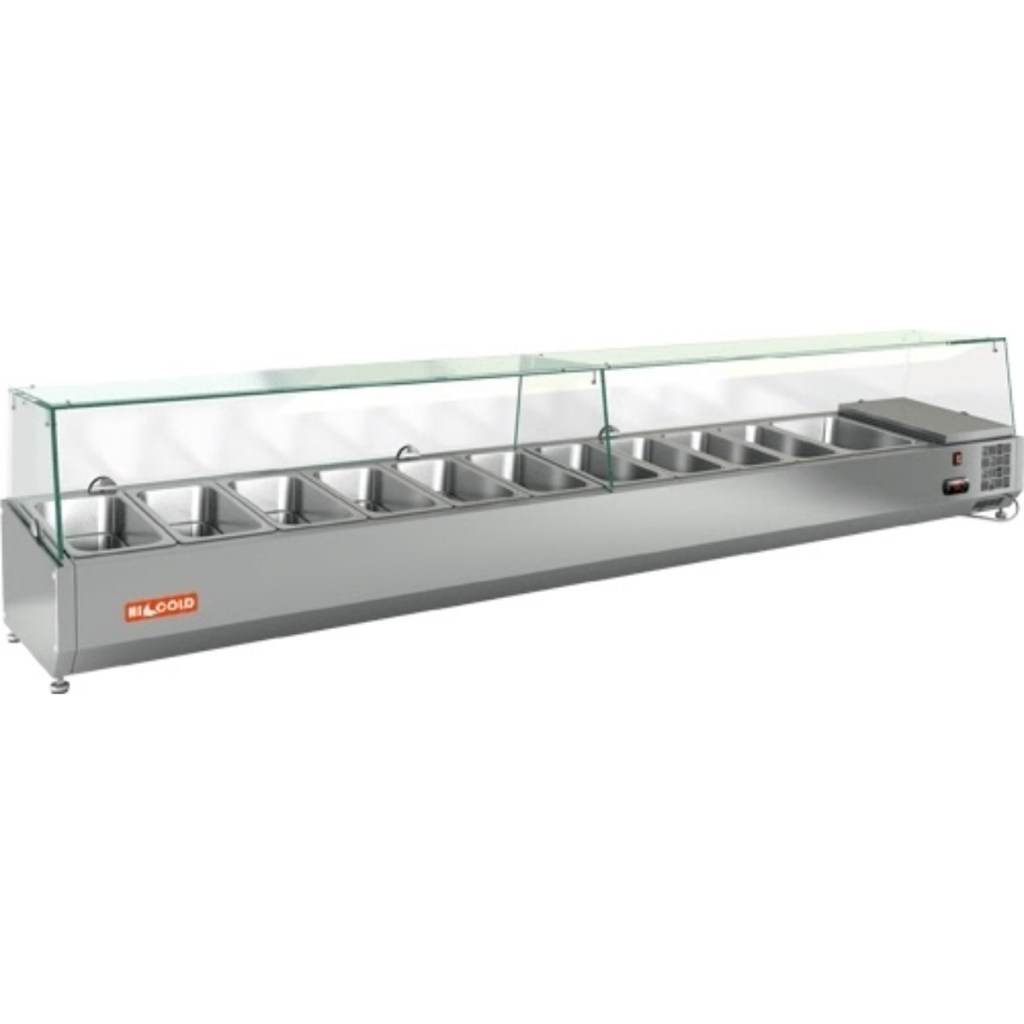 Каталог оборудования Холодильное оборудованиеВитрины для ингредиентовВитрина холодильная для ингредиентов HICOLD VRTG 2360 1/3 Витрина холодильная для ингредиентов HICOLD VRTG 2360 1/3 Код товара: 064-449 Поделиться: WhatsAppTelegram СравнитьДобавить в КПВ избранное 0 89 847 ₽ В корзину 0 шт Под заказСамовывоз сегодня бесплатно Взять в кредит Купить в лизинг Получить консультацию в WhatsApp Описание Характеристики Отзывы 0 Инструкции 2 Витрина холодильная для ингредиентов HICOLD VRTG 2360 1/3 предназначена для охлаждения, кратковременного хранения и наглядной демонстрации ингредиентов, салатов и готовых блюд на предприятиях общественного питания и в торговых точках. Гастроёмкости в комплект не входят, приобретаются отдельно. Основные особенности: Корпус выполнен из нержавеющей стали, обеспечивая долговечность и легкость в уходе; Электронная панель управления для точной настройки температуры; Модель с надстройкой из стекла (исполнение G) для удобной демонстрации продуктов; Высота витрины — 225 мм, высота стеклянной надстройки — 205 мм; Вместимость: 10 гастроёмкостей GN1/3 + 1 гастроёмкость GN1/2; Опорные ножки для устойчивой установки на столешнице. HICOLD VRTG 2360 1/3 — компактная и функциональная настольная витрина, идеально подходящая для демонстрации и кратковременного хранения продуктов на профессиональной кухне или в торговой зоне.Изображение товара, представленного на фото, может отличаться от его фактического вида. Показать все Габаритные размеры2360×385×459 ммДиапазон рабочей температурыот +2 до +7 °CДлина2360 ммГлубина385 ммВысота459 ммТип крышкиСтеклянная Гастроемкостей11 штТип гастроемкостейGN1/3, GN1/2 Мощность0,15 ВтНапряжение220 ВТип охлажденияСтатическое Материал изготовленияНержавеющая сталь ХладагентR134 Вес нетто67 кгВес брутто107 кгТип оттайкиРучная Габариты в упаковке2460×485×559 ммБрендHicold Оставить отзыв Еще никто не оставил отзыв на этот товар Инструкция на HICOLD VRTG 2360.pdfДекларация о соответствии.pdf Похожие товары Перейти в каталог Под заказ 61 551 ₽ Витрина холодильная для ингредиентов HICOLD VRTG 1425 1/4 Под заказ 46 348 ₽ Витрина холодильная для ингредиентов Tatra TVR2000-10GN1/4 В наличии 65 926 ₽ Витрина холодильная для ингредиентов HICOLD VRTG 1485 к PZE3 (1/3) Под заказ 84 610 ₽ Витрина холодильная для ингредиентов HICOLD VRTG 2280 к PZ3 (1/3) Под заказ 56 151 ₽ Витрина холодильная для ингредиентов HICOLD VRTO 1970 1/3 Под заказ 47 943 ₽ Витрина холодильная для ингредиентов HICOLD VRTO 1390 1/4 Под заказ 84 879 ₽ Витрина холодильная для ингредиентов HICOLD VRTG 2280 1/3 Под заказ 50 158 ₽ Витрина холодильная для ингредиентов HICOLD VRTO 1390 к PZ3 (1/3) С этим товаром покупают В наличии 114 390 ₽ Шкаф холодильный Carboma ШХ-0,8К Под заказ 94 164 ₽ Шкаф холодильный универсальный Ангара 800 БК Под заказ 112 617 ₽ Шкаф морозильный МХМ Капри 0,5Н нержавейка Под заказ 163 266 ₽ Шкаф холодильный Abat ШХс-1,4-02 Под заказ 113 634 ₽ Шкаф холодильный универсальный Ангара 1000 РБК Под заказ 64 636 ₽ Шкаф морозильный для икры и пресервов МХМ ШХН 0,06С Под заказ 154 859 ₽ Шкаф холодильный TEFCOLD UR600G Под заказ 130 069 ₽ Шкаф холодильный Abat ШХ-0,7-02 Ранее просмотрено Под заказ 55 287 ₽ Витрина холодильная для ингредиентов HICOLD VRTU 1835 1/4