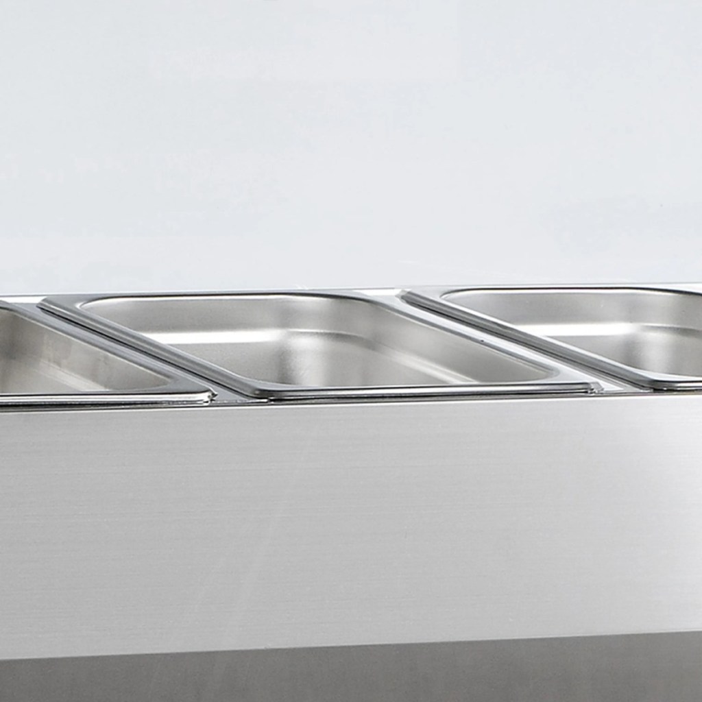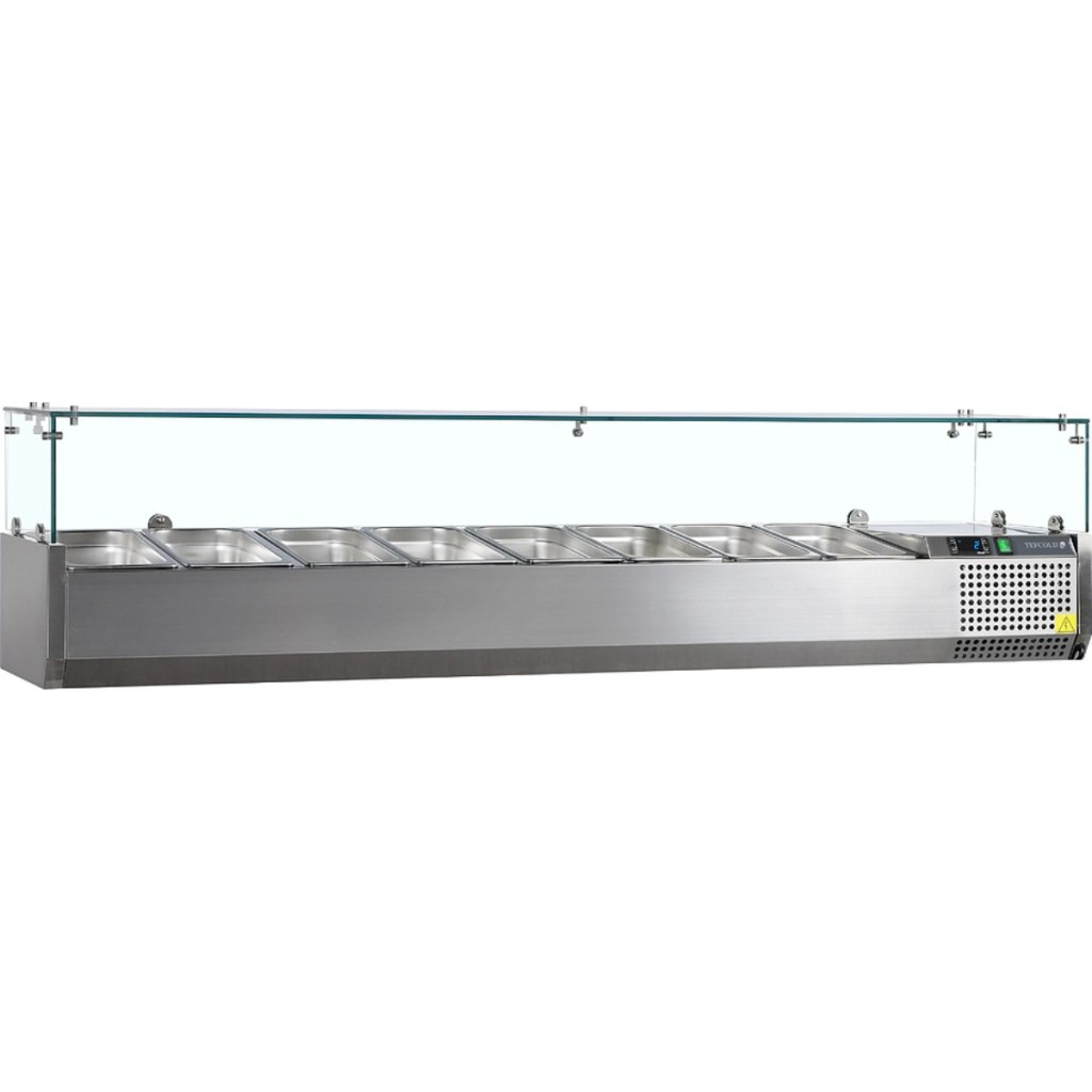 Каталог оборудования Холодильное оборудованиеВитрины для ингредиентовВитрина холодильная для ингредиентов TEFCOLD VK38-180 Витрина холодильная для ингредиентов TEFCOLD VK38-180 Код товара: 067-497 Поделиться: WhatsAppTelegram СравнитьДобавить в КПВ избранное 0 100 021 ₽ В корзину 0 шт В наличииСамовывоз сегодня бесплатно Взять в кредит Купить в лизинг Получить консультацию в WhatsApp Описание Характеристики Отзывы 0 Инструкции 2 Витрина холодильная для ингредиентов TEFCOLD VK38-180 предназначена для кратковременного хранения и демонстрации салатов, мясных и рыбных закусок, а также ингредиентов на предприятиях общественного питания и торговли. Корпус и внутренняя обшивка выполнены из нержавеющей стали, обеспечивая долговечность и легкость очистки. Гастроемкости в комплект не входят. Особенности: Статическое охлаждение — равномерное поддержание температуры для деликатных продуктов. Механическое размораживание — надежное удаление наледи без вмешательства пользователя. Хладагент R600a — экологичный и энергоэффективный. Электронный термостат и градусник — точная настройка и контроль температуры. Гнутый стеклянный колпак — обеспечивает обзор продукции и защиту от внешних воздействий. Регулируемые ножки — удобная установка и устойчивость на неровной поверхности. Климатический класс 4 — работа при температуре окружающей среды до +32°C. Вместимость — 6×GN 1/3 глубиной 150 мм, удобно для салатов и закусок. Перегородки — 5 длинных и 4 коротких для удобного разделения продуктов. Уровень шума — 47 дБ, почти бесшумная работа. Хладагент — 0,04 кг, эффективное охлаждение при минимальном расходе. Внутренние размеры — 1445×305×155 мм, компактное размещение емкостей. TEFCOLD VK38-180 — надежная и компактная витрина для демонстрации и кратковременного хранения продуктов с безопасным поддержанием температуры.Изображение товара, представленного на фото, может отличаться от его фактического вида. Показать все Габаритные размеры1500×395×435 ммДиапазон рабочей температурыот +2 до +10 °CДлина1500 ммГлубина395 ммВысота435 ммТип крышкиСтеклянная Гастроемкостей8 штТип гастроемкостейGN 1/3 Мощность0,112 ВтТип охлажденияСтатическое Уровень шума47 дБКлиматический класс4 ХладагентR600a Вес нетто69 кгВес брутто74 кгТип оттайкиРучная Габариты в упаковке1880×440×310 ммБрендTefcold Оставить отзыв Еще никто не оставил отзыв на этот товар Инструкция на TEFCOLD VK38-180.pdfСхема TEFCOLD VK38-180.jpg Похожие товары Перейти в каталог В наличии 66 196 ₽ Витрина холодильная для ингредиентов HICOLD VRTG 1485 1/3 Под заказ 64 792 ₽ Витрина холодильная для ингредиентов HICOLD VRX 1500 1/3 С этим товаром покупают Под заказ 126 495 ₽ Стол холодильный среднетемпературный Carboma T70 M3-1-G 9006 (3GNG/NT Полюс) В наличии 41 718 ₽ Льдогенератор HURAKAN HKN-IMC25 (кубики) В наличии 66 070 ₽ Шкаф холодильный МХМ Капри П-390М Ранее просмотрено В наличии 99 036 ₽ Витрина холодильная для ингредиентов TEFCOLD VK33-160