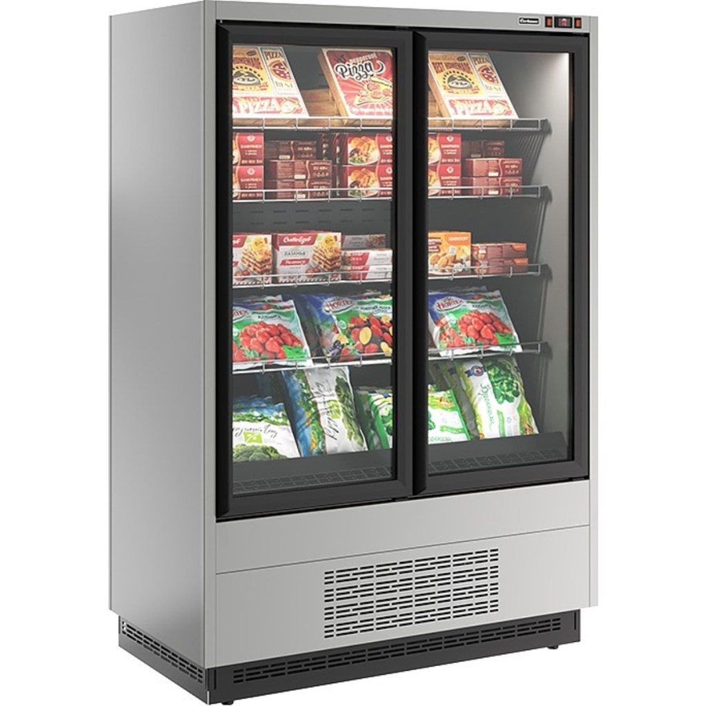 Горка холодильная Carboma FC20-07 VL 1,3-1 0300 STANDARD фронт X5L (версия 2.0) (9006-9005) используется на предприятиях общественного питания и торговли для кратковременного хранения и предпродажной демонстрации мяса, птицы и другой замороженной продукции.