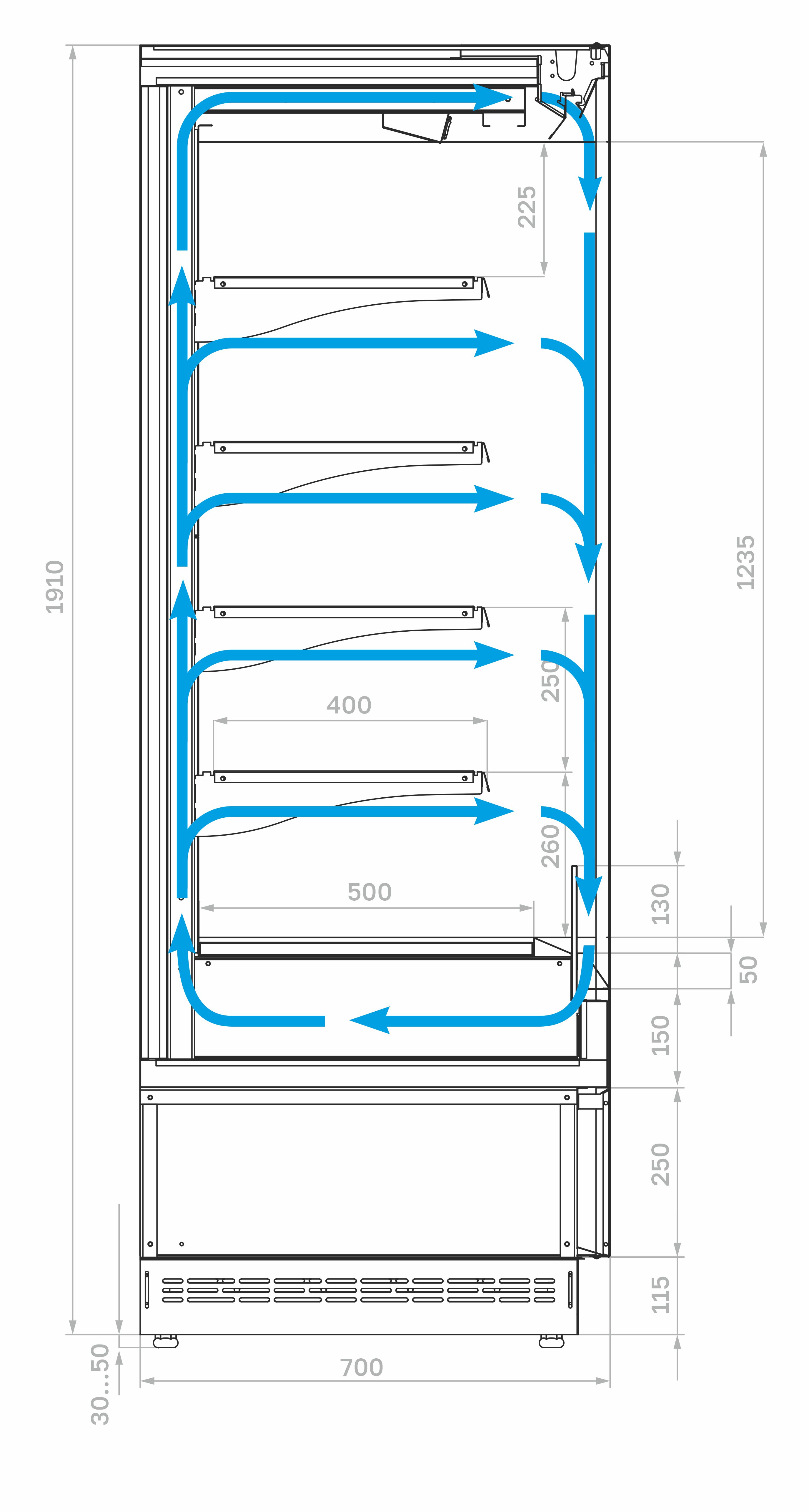 Carboma FC20-07 VM 0,7-2 (версия 2.0) (индивидуальное исполнение) — это функциональное и надёжное решение для предприятий общественного питания и торговли. Она обеспечивает стабильное динамическое охлаждение, экономичное энергопотребление и удобную демонстрацию продукции за счёт продуманной конструкции с четырьмя регулируемыми полками.