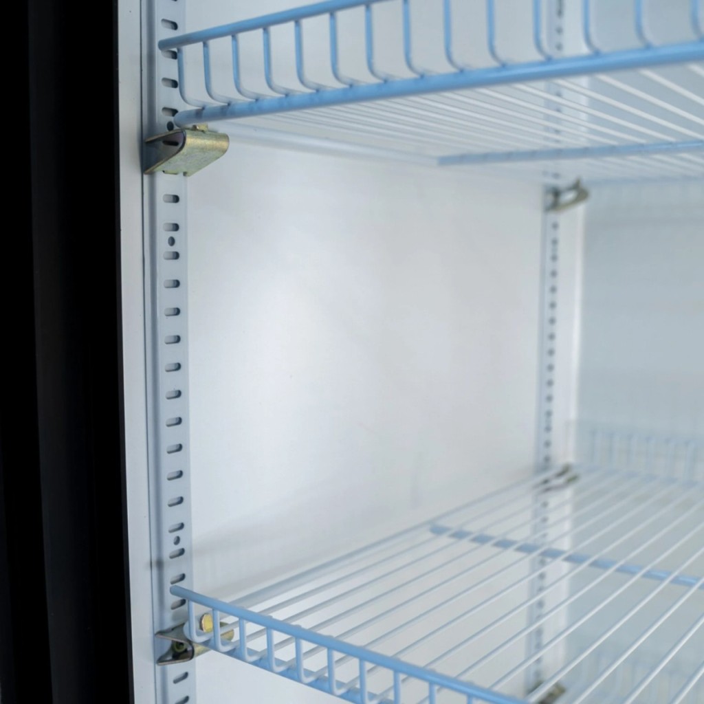 Каталог оборудования Холодильное оборудованиеШкафы холодильныеШкафы морозильные низкотемпературные до -18 °СШкаф морозильный Ангара 1000 РБК Шкаф морозильный Ангара 1000 РБК Код товара: 066-409 Поделиться: WhatsAppTelegram СравнитьДобавить в КПВ избранное 0 139 830 ₽ В корзину 0 шт Под заказСамовывоз сегодня бесплатно Взять в кредит Купить в лизинг Получить консультацию в WhatsApp Описание Характеристики Отзывы 0 Шкаф морозильный Ангара 1000 РБК предназначен для кратковременного хранения, демонстрации и продажи замороженных пищевых продуктов и напитков. Нижнее расположение агрегата обеспечивает удобный доступ к продукции, а приподнятая выкладка позволяет выгодно представить товар, включая нижние полки, что важно для мерчендайзинга. Шкаф сочетает высокую теплоизоляцию, эффективное динамическое охлаждение и долговечные материалы. Раздвижные стеклянные двери купе обеспечивают лёгкий обзор товаров и экономию пространства. Светодиодная подсветка внутреннего объёма гарантирует яркое освещение и комфортную работу персонала. Внимание! На фото показана аналогичная модель с 10 полками. Особенности модели: Корпус из окрашенной оцинкованной стали с пенополиуретановым заполнением — прочность и отличная теплоизоляция. Электронный блок управления Advance / Elitech ETC-974 (2 датчика, усиленное реле) — точный контроль температуры и режимов работы. Режим автоматического размораживания и автоматическое выпаривание талой воды — удобство эксплуатации и минимизация ухода. Компрессор Danfoss Secop или Embraco Aspera — надёжная и эффективная работа. Заправочный клапан Шредера — удобство сервисного обслуживания. Герметичный внутренний объём — эластичный дверной уплотнитель из ПВХ с магнитной вставкой. Динамическое охлаждение и обдуваемые конденсаторы — равномерное и стабильное охлаждение. Светодиодная подсветка внутреннего объёма — яркая, долговечная и энергоэффективная. Экологичный хладагент R-404a — нетоксичный, без содержания брома и хлора. Испаритель SEST LUVE (Италия) — высокоэффективный теплообменник. Количество полок: 8 + нижняя часть, нагрузка на полку 40 кг. Толщина стенок: 50 мм (пенополиуретан) — высокая теплоизоляция. Способ оттайки: ТЭН — быстрая и эффективная разморозка. Двери: 2 стеклянные распашные — полный обзор товара и удобный доступ. Морозильный шкаф Ангара 1000 РБК — надёжное и удобное решение для хранения и демонстрации замороженных продуктов. Прочные материалы, динамическое охлаждение, ТЭН-оттайка и раздвижные двери обеспечивают сохранность продукции, удобство эксплуатации и эффективное использование внутреннего объёма.Изображение товара, представленного на фото, может отличаться от его фактического вида. Показать все Габаритные размеры1280×630×2050 ммДиапазон рабочей температурыот -18 до -20 °CДлина1280 ммГлубина630 ммВысота2050 ммПолезный объем960 лОбъём1000 лМатериал корпусаОкрашенная сталь Тип оттайкиАвтоматическая Тип охлажденияДинамическое Тип управленияЭлектронное Расход электроэнергии в сутки11,8 кВтПотребляемая мощность0,491 кВтКоличество полок8 штКоличество дверей2 штЗамокНет Тип двериСтеклянная Способ открыванияРаспашные Напряжение220 ВКлиматический классSN (+10...+32) ХладагентR404а ПодсветкаЕсть Холодильный агрегатВстроенный Расположение агрегатаНижнее Габариты в упаковке1350×700×2120 ммОбъём брутто2,00 м³Вес нетто165 кгВес брутто185 кгБрендАнгараВс
