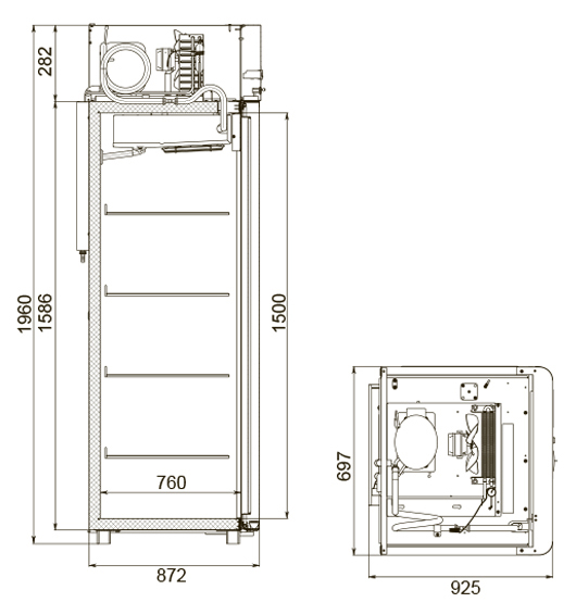 Каталог оборудования Холодильное оборудованиеШкафы холодильныеШкафы холодильные универсальные от -5 до +5 °СШкаф холодильный универсальный Polair CV107-Gm Alu Шкаф холодильный универсальный Polair CV107-Gm Alu Код товара: 062-610 Поделиться: WhatsAppTelegram СравнитьДобавить в КПВ избранное 0 149 175 ₽ В корзину 0 шт Под заказСамовывоз сегодня бесплатно Взять в кредит Купить в лизинг Получить консультацию в WhatsApp Описание Характеристики Отзывы 0 Инструкции 4 Шкаф холодильный универсальный Polair CV107-Gm Alu предназначен для демонстрации и надежного хранения продуктов на предприятиях общественного питания и торговли. Корпус шкафа цельнозаливной, выполнен из прочной стали с полимерным покрытием, что гарантирует высокую механическую прочность и длительный срок службы. Алюминиевые профили дверей и верхней панели подчеркивают современный, премиальный дизайн. Оборудование эффективно работает при температуре окружающей среды до 40 °С и влажности воздуха до 80%. Особенности модели: Многофункциональная контрольная панель (терморегулятор) для удобного управления параметрами. Жидкокристаллический дисплей, обеспечивающий чёткое отображение настроек и информации о работе шкафа. Клапан Шредера для удобного обслуживания холодильного контура. Распашной тип двери для легкого доступа к продуктам. Возможность изменить сторону открывания двери (при наличии опции), что делает установку более универсальной. Полностью интегрированные в профили дверей ручки, подчеркивающие стильный внешний вид и удобство использования. Встроенная светодиодная подсветка для отличной видимости содержимого шкафа. Надежный замок для защиты продуктов. Педаль для удобного открывания двери без использования рук. Высокая допустимая нагрузка на полку — до 40 кг, что позволяет хранить большие объемы продукции. Размер полки: GN 2/1 (530×650 мм), подходит для стандартных гастроемкостей. Толщина стенки корпуса — 43 мм, обеспечивающая отличную теплоизоляцию и снижение энергопотерь. Polair CV107-Gm Alu — это функциональный и стильный холодильный шкаф, который сочетает надежность, эргономичный дизайн и удобство эксплуатации. Использование прочных материалов и продуманная конструкция делают его идеальным решением для профессиональной кухни или торгового зала.Изображение товара, представленного на фото, может отличаться от его фактического вида. Показать все Габаритные размеры697×925×1960 ммДиапазон рабочей температурыот -5 до +5 °CДлина697 ммГлубина925 ммВысота695 ммОбъём700 лРазмер полки530×650 ммКоличество полок4 штКоличество дверей1 штТип оттайкиАвтоматическая Тип охлажденияДинамическое Тип управленияЭлектронное Материал корпусаНержавеющая сталь Тип двериМеталлическая ЗамокЕсть Способ открыванияРаспашные ХладагентR290 Холодильный агрегатВстроенный Расположение агрегатаВерхнее Потребление электроэнергии в сутки4,5 кВтПотребляемая мощность0,4 кВтНапряжение220 ВГабариты в упаковке800×1000×2150 ммВес нетто115 кгВес брутто140 кгБрендPolairВсе шкафы холодильные универсальные от -5 до +5 °С Из нержавейки Оставить отзыв Еще никто не оставил отзыв на этот товар Схема POLAIR CV107-Gm Alu.jpgИнструкция на POLAIR CV107-Gm Alu.pdfДекларация о соответствии.pdfСертификат соответствия.pdf Похожие товары Перейти в каталог Под заказ 124 844 ₽ Шкаф холодильный универсальный Ангара 1500 РБК Под заказ 73 792 ₽ Шкаф холодильный универсальный МХМ Капри П-390УМ (ВО, кон