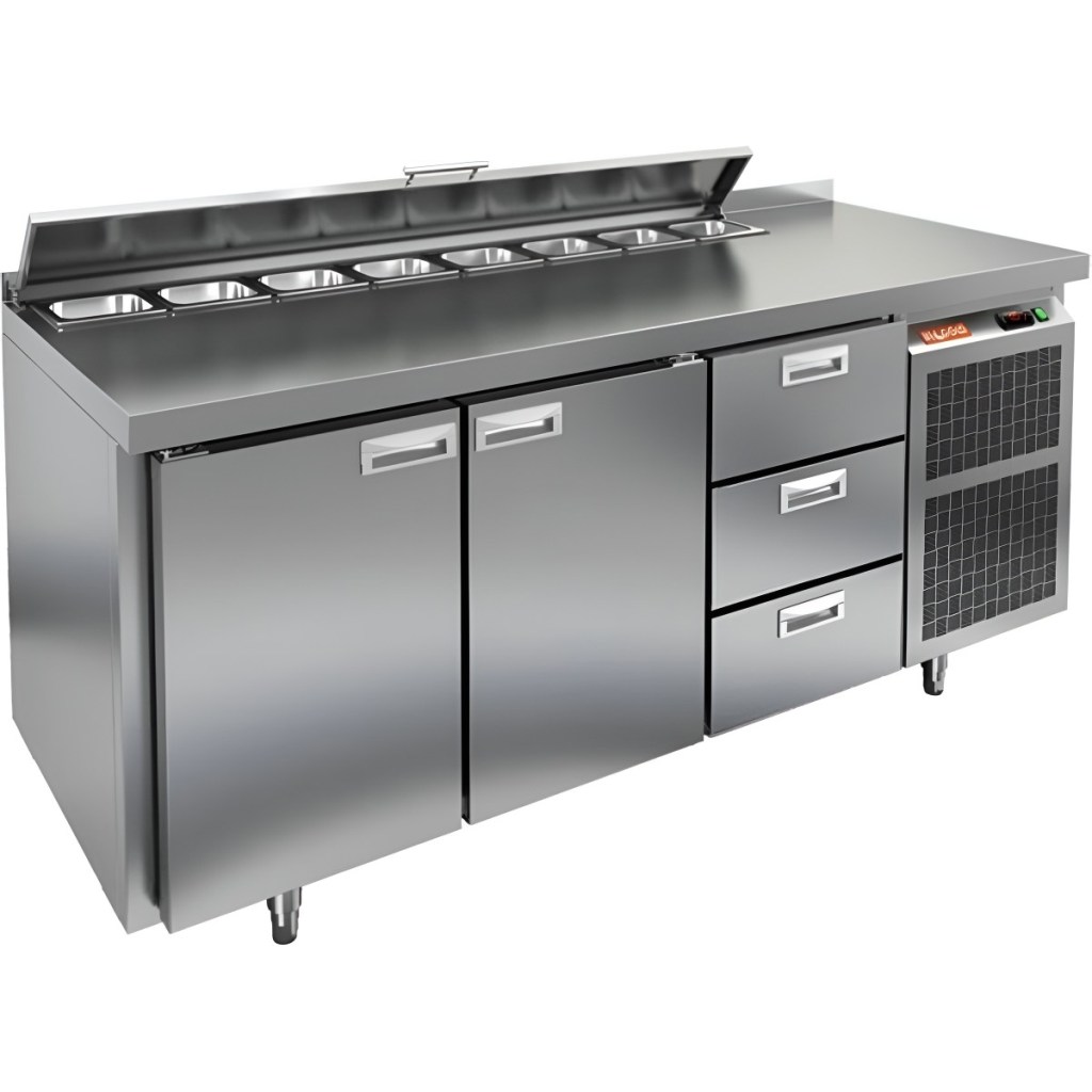 Модель совмещает охлаждаемый объем и рабочую поверхность, что значительно повышает удобство и скорость работы персонала. Корпус и столешница выполнены из прочной и гигиеничной нержавеющей стали, устойчивой к влаге, загрязнениям и механическим повреждениям. Металлическая крышка защищает продукты от загрязнений и сохраняет их свежесть.