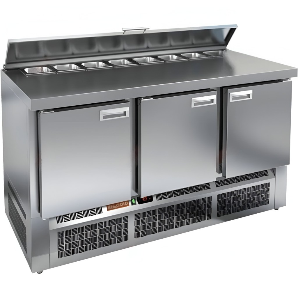 Каталог оборудования Холодильное оборудованиеСтолы охлаждаемыеСтолы холодильные для салатовСтол холодильный для салатов HiCold SLE2-111GN (1/6) О с крышкой Стол холодильный для салатов HiCold SLE2-111GN (1/6) О с крышкой Код товара: 064-867 Поделиться: WhatsAppTelegram СравнитьДобавить в КПВ избранное 0 147 232 ₽ В корзину 0 шт Под заказСамовывоз сегодня бесплатно Взять в кредит Купить в лизинг Получить консультацию в Max Описание Характеристики Отзывы 0 Инструкции 2 Стол холодильный для салатов HiCold SLE2-111GN (1/6) О с крышкой предназначен для предприятий общественного питания и торговли. Он используется для хранения, охлаждения и обработки ингредиентов, применяемых при приготовлении салатов, пиццы, закусок и других блюд. Модель объединяет удобную рабочую поверхность и охлаждаемый отсек, позволяя повару иметь все необходимое под рукой. Конструкция выполнена из прочной нержавеющей стали, устойчивой к коррозии и легкой в уходе. Металлическая крышка защищает продукты от загрязнений и сохраняет их свежесть. Особенности модели: Электронная панель управления — точная настройка температуры и контроль за режимами работы. 3 вместительные внутренние полки — рациональное распределение хранения. Салат-бар вмещает 8 гастроемкостей — оптимальная организация ингредиентов. Автоматические доводчики дверей с фиксацией в открытом положении — удобно при загрузке и выгрузке продуктов. Магнитные уплотнители — легко заменяются, обеспечивая герметичность. Открытая агрегатная часть — упрощает техническое обслуживание. Регулируемые по высоте ножки — позволяют установить оборудование на любой поверхности. Глубина гастроемкостей — до 100 мм. Толщина столешницы и теплоизоляции — по 50 мм, что способствует сохранению холода и прочности конструкции. HiCold SLE2-111GN (1/6) О с крышкой — это функциональный и надёжный салатный стол, сочетающий в себе удобство работы и эффективное охлаждение. Отличное решение для кухни с интенсивной нагрузкой. Изображение товара, представленного на фото, может отличаться от его фактического вида. Показать все Габаритные размеры1485×700×850 ммДиапазон рабочей температурыот +2 до +10 °CРасположение агрегатаНижнее Материал столешницыНержавеющая Тип столаС дверьми Тип двериГлухая Объём375 лКоличество дверей3 штТип гастроемкостейGN 1/6 Размер полки530×325 ммНапряжение220 ВМощность0,22 кВтТип охлажденияДинамическое Тип оттайкиАвтоматическая СтолешницаБез борта Габариты в упаковке1700×850×1080 ммВес нетто115 кгВес брутто160 кгБрендHicold Оставить отзыв Еще никто не оставил отзыв на этот товар Паспорт на HICOLD SLE2-111GN О.pdfДекларация о соответствии.pdf Ранее просмотрено Под заказ 159 742 ₽ Стол холодильный для салатов HiCold SLE1-111GN (1/3) 3 замок
