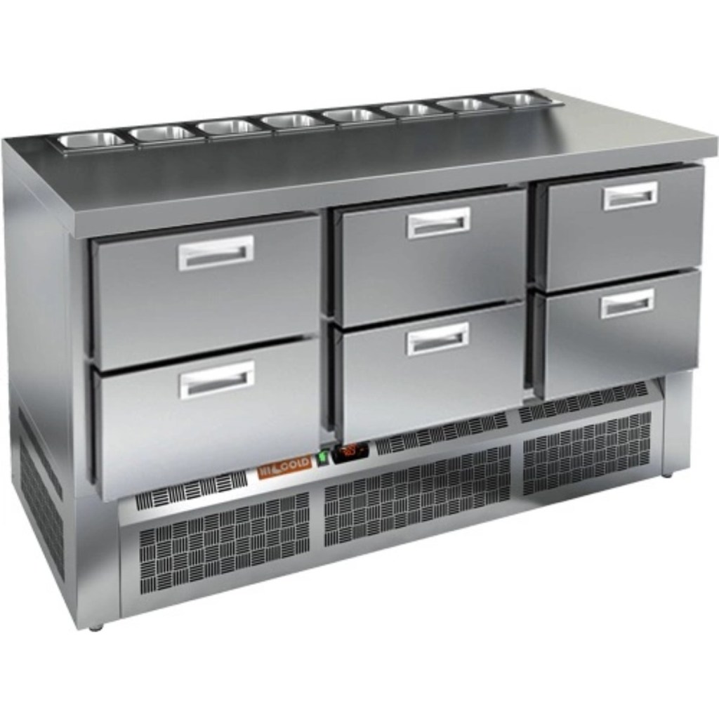 Каталог оборудования Холодильное оборудованиеСтолы охлаждаемыеСтолы холодильные для салатовСтол холодильный для салатов HiCold SLE2-222GN (1/6) О без крышки Стол холодильный для салатов HiCold SLE2-222GN (1/6) О без крышки Код товара: 064-890 Поделиться: WhatsAppTelegram СравнитьДобавить в КПВ избранное 0 235 882 ₽ В корзину 0 шт Под заказСамовывоз сегодня бесплатно Взять в кредит Купить в лизинг Получить консультацию в WhatsApp Описание Характеристики Отзывы 0 Стол холодильный для салатов HiCold SLE2-222GN (1/6) О без крышки — это профессиональный салатный стол, предназначенный для использования в кафе, ресторанах, пиццериях и других предприятиях общественного питания. Он совмещает в себе просторную рабочую поверхность и охлаждаемый объем, обеспечивая удобство и эффективность при приготовлении различных блюд — от салатов до пиццы. Благодаря корпусу и столешнице из нержавеющей стали, оборудование устойчиво к коррозии, легко очищается и соответствует санитарным требованиям. Ключевые особенности: Электронная панель управления — обеспечивает точное регулирование температуры и удобство в эксплуатации. 6 выдвижных ящиков — обеспечивают удобное распределение ингредиентов и быстрый доступ к ним в процессе работы. Салат-бар вмещает до 8 гастроемкостей — оптимален для широкого ассортимента заготовок. Автоматические доводчики дверей с фиксацией — повышают удобство использования, особенно при загрузке и выгрузке продуктов. Магнитные уплотнители — легко заменяются и обеспечивают плотное прилегание, предотвращая утечку холода. Открытая агрегатная часть — облегчает техническое обслуживание. Регулируемые ножки — позволяют установить стол на любой поверхности, компенсируя неровности пола. Максимальная глубина гастроемкостей — 100 мм — подходит для хранения различных типов продуктов. Столешница толщиной 50 мм без борта — полноценная рабочая зона. Теплоизоляция толщиной 50 мм — сохраняет стабильный температурный режим и снижает энергозатраты. HiCold SLE2-222GN (1/6) О без крышки — это функциональный и вместительный салатный стол, который идеально подходит для профессиональных кухонь с интенсивной загрузкой. Он сочетает в себе надежность, удобство и продуманную конструкцию для максимальной производительности на рабочем месте.Изображение товара, представленного на фото, может отличаться от его фактического вида. Показать все Габаритные размеры1485×700×850 ммДиапазон рабочей температурыот +2 до +10 °CРасположение агрегатаНижнее Материал столешницыНержавеющая Тип столаС ящиками Объём375 лТип гастроемкостейGN 1/6 Количество ящиков6 штНапряжение220 ВМощность0,2 кВтТип охлажденияДинамическое Тип оттайкиАвтоматическая СтолешницаБез борта Габариты в упаковке1700×850×1080 ммВес нетто115 кгВес брутто160 кгБрендHicold Оставить отзыв Еще никто не оставил отзыв на этот товар Ранее просмотрено Под заказ 320 122 ₽ Стол холодильный для салатов HiCold SL2-2222GN (1/6) с крышкой