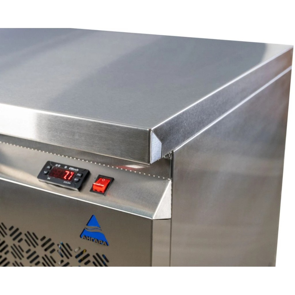 Каталог оборудования Холодильное оборудованиеСтолы охлаждаемыеСтолы холодильные среднетемпературныеСтол холодильный среднетемпературный Ангара СХБ 1,390-700 Стол холодильный среднетемпературный Ангара СХБ 1,390-700 Код товара: 066-350 Поделиться: WhatsAppTelegram СравнитьДобавить в КПВ избранное 0 123 546 ₽ В корзину 0 шт Под заказСамовывоз сегодня бесплатно Взять в кредит Купить в лизинг Получить консультацию в WhatsApp Описание Характеристики Отзывы 0 Стол холодильный среднетемпературный Ангара СХБ 1,390-700 предназначен для обработки ингредиентов и кратковременного хранения скоропортящихся продуктов и напитков на предприятиях общественного питания и торговли. Модель сочетает компактные размеры, функциональность и надёжность, обеспечивая удобство работы на кухне. Особенности модели: Электронное управление — интуитивно понятная панель позволяет точно регулировать температурный режим и контролировать работу устройства. Корпус и столешница из нержавеющей стали — обеспечивают долговечность, устойчивость к коррозии и лёгкость в уходе. Две дверцы и две полки размером 530×325 мм — обеспечивают удобный доступ к продуктам и рациональное использование внутреннего пространства. Регулируемые ножки — позволяют адаптировать высоту стола под индивидуальные условия рабочей зоны. Автоматические доводчики дверей с фиксацией — двери закрываются плавно и остаются зафиксированными в открытом положении при необходимости. Съёмные магнитные уплотнители — упрощают чистку и замену, поддерживая герметичность и эффективность охлаждения. Диапазон температур: -2…+10 °C / +2…+10 °C, что позволяет использовать стол как для охлаждённых, так и для быстро портящихся продуктов. Холодильный стол Ангара СХБ 1,390-700 — это практичное и надёжное решение для профессиональных кухонь и торговых точек. Совмещение эргономичной конструкции, долговечных материалов и точного электронного контроля температуры обеспечивает удобство эксплуатации и эффективное хранение продуктов в оптимальных условиях.Изображение товара, представленного на фото, может отличаться от его фактического вида. Показать все Габаритные размеры1390×700×850 ммДиапазон рабочей температурыот -2 до +10 °CРасположение агрегатаБоковое Материал столешницыНержавеющая Тип столаС дверьми Тип двериГлухая Объём350 лКоличество дверей2 штКоличество полок2 штРазмер полки530×325 ммНапряжение220 ВМощность0,22 кВтТип охлажденияДинамическое Тип оттайкиАвтоматическая СтолешницаС бортом БрендАнгараВсе нержавеющие холодильные столы Все холодильные столы с бортом Оставить отзыв Еще никто не оставил отзыв на этот товар Ранее просмотрено Под заказ 140 302 ₽ Стол холодильный среднетемпературный Ангара СХБ 1,835-600 Под заказ 153 754 ₽ Стол холодильный среднетемпературный Ангара СХН 1,970-600 Под заказ 225 132 ₽ Сплит-система холодильная низкотемпературная Intercold LCM 316 PR FT (опция -30° С) Под заказ 132 868 ₽ Стол холодильный среднетемпературный Ангара СХН 1,485-600