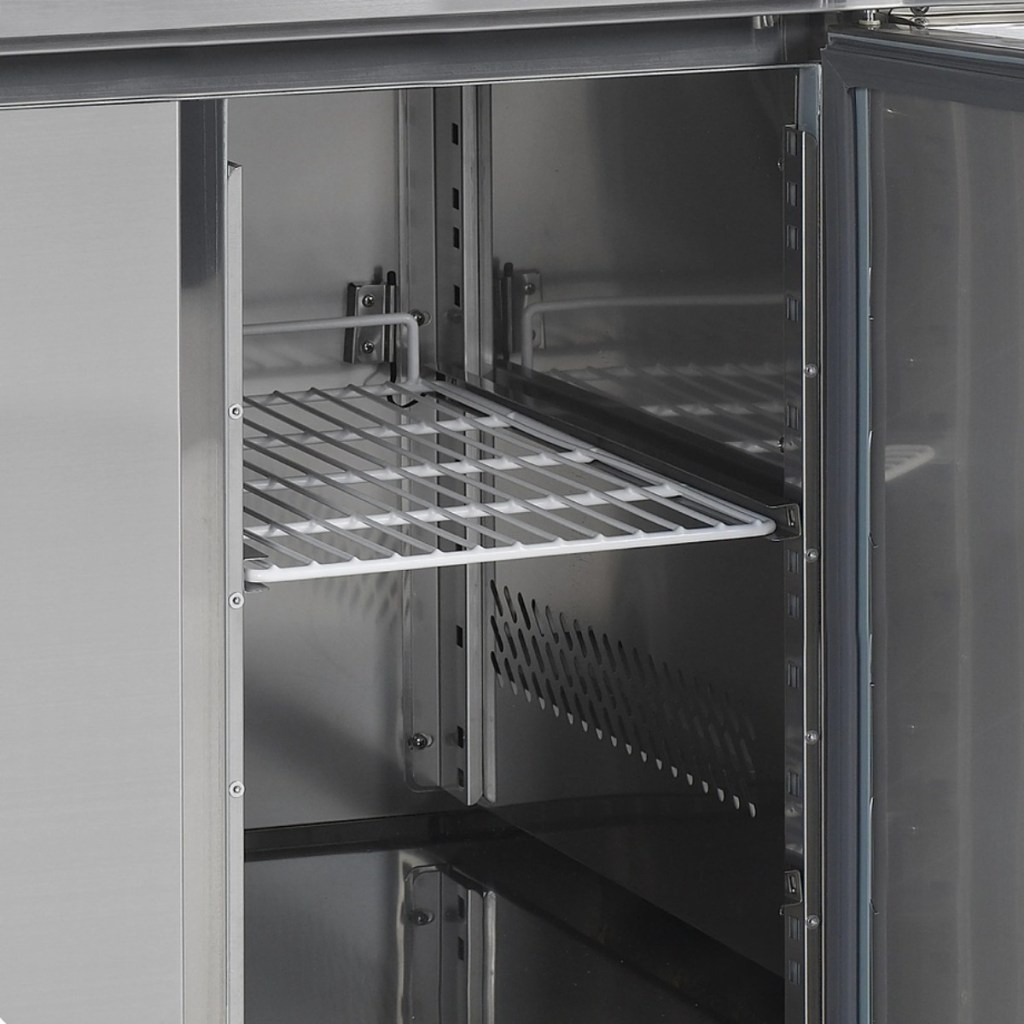 Каталог оборудования Холодильное оборудованиеСтолы охлаждаемыеСтолы морозильные низкотемпературныеСтол морозильный TEFCOLD CF7310/-SP Стол морозильный TEFCOLD CF7310/-SP Код товара: 066-712 Поделиться: WhatsAppTelegram 0 Цена по запросу Получить консультацию в WhatsApp Описание Характеристики Отзывы 0 Инструкции 4 Стол морозильный TEFCOLD CF7310/-SP — профессиональное оборудование, объединяющее рабочую поверхность и морозильную камеру. Предназначен для приготовления, охлаждения, замораживания и хранения продуктов, полуфабрикатов, блюд и напитков. Модель оснащена встроенным агрегатом справа, термометром, 3 глухими дверьми, 3 решетчатыми полками GN1/1 и 4 регулируемыми ножками. Корпус, столешница и внутренняя отделка выполнены из высококачественной нержавеющей стали SS304. Особенности модели: Динамическое охлаждение — равномерное распределение холода Электронный контроллер — точное управление температурой Автоматическая разморозка — стабильная работа без наледи Самозакрывающиеся двери Съёмная столешница без борта — удобство уборки и обслуживания Климатический класс 4 — работа при температуре до +30 °C Класс энергоэффективности D Хладагент R290, масса — 0,09 кг Размер полок: GN1/1 Полезный объём: 402 л Общий объём: 417 л Внутренние размеры: 1337 × 530 × 589 мм Энергопотребление: 8,76 кВт/сутки (годовое — 3197 кВт⋅ч/год) Частота: 50 Гц Уровень шума: 42 дБ(А) TEFCOLD CF7310/-SP — надёжный и функциональный морозильный стол для профессиональных кухонь. Он сочетает рабочую поверхность с вместительной морозильной камерой, обеспечивая удобство работы, долговременное хранение продуктов и эффективное управление температурой.Изображение товара, представленного на фото, может отличаться от его фактического вида. Показать все Габаритные размеры1795×700×980 ммДиапазон рабочей температурыот -20 до -10 °CРасположение агрегатаБоковое Материал столешницыНержавеющая Тип столаС дверьми Тип двериГлухая Общий объем417 лПолезный объем402 лТип гастроемкостейGN1/1 Количество дверей3 штРазмер полки530×325 ммНапряжение220 ВМощность0,57 кВтРасход электроэнергии в сутки6,95 кВт/сутТип охлажденияДинамический Тип оттайкиАвтоматическая Климатический класс4 ХладагентR290 СтолешницаБез борта Уровень шума42 дБГабариты в упаковке1830×750×1010 ммВес нетто152 кгВес брутто162 кгБрендTefcoldВсе морозильные столы без борта Оставить отзыв Еще никто не оставил отзыв на этот товар Брошюра на TEFCOLD CF7310-SP.pdfИнструкция на TEFCOLD CF7310-SP.pdfВзрыв-схема на TEFCOLD CF7310-SP.pdfДекларация о соответствии.pdf Похожие товары Перейти в каталог Под заказ 125 817 ₽ Стол морозильный HURAKAN HKN-GN3BT Под заказ 166 404 ₽ Стол морозильный Abat СХН-70-02 без борта (дверь, дверь, дверь) С этим товаром покупают В наличии 201 690 ₽ Шкаф морозильный Полюс Carboma F1400