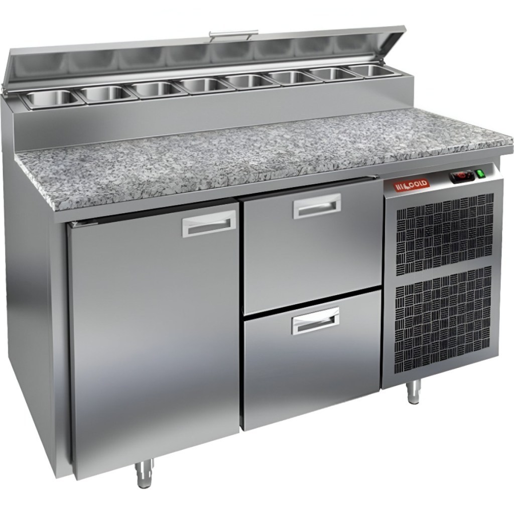 Каталог оборудования Холодильное оборудованиеСтолы охлаждаемыеСтолы холодильные для пиццыСтол холодильный для пиццы HiCold PZ1-12GN (1/3) камень Стол холодильный для пиццы HiCold PZ1-12GN (1/3) камень Код товара: 064-704 Поделиться: WhatsAppTelegram СравнитьДобавить в КПВ избранное 0 238 492 ₽ В корзину 0 шт Под заказСамовывоз сегодня бесплатно Взять в кредит Купить в лизинг Получить консультацию в Max Описание Характеристики Отзывы 0 Инструкции 2 Стол холодильный для пиццы HiCold PZ1-12GN (1/3) — профессиональное оборудование для предприятий общественного питания и торговли. Он объединяет рабочую поверхность для раскатки теста и подготовки ингредиентов с охлаждаемым блоком для кратковременного хранения скоропортящихся продуктов и напитков. Совмещение рабочей поверхности и холодильного объёма обеспечивает удобство и экономию времени — все необходимые компоненты всегда под рукой. Каменная столешница устойчива к механическим повреждениям и легко очищается, что особенно важно для интенсивной эксплуатации. Основные особенности: Каменная столешница и корпус из нержавеющей стали — прочность, долговечность и гигиеничность Динамическая система охлаждения — равномерное распределение холода Автоматическая оттайка — стабильная работа без образования наледи Электронная панель управления — точная настройка температуры 1 дверца и 2 выдвижных ящика — удобная организация внутреннего пространства 1 вместительная полка формата GN 1/1 (размер 530×325 мм) Автоматические доводчики дверей с фиксатором открытого положения — комфорт при работе Легкозаменяемые магнитные уплотнители — поддержание герметичности Открытая агрегатная часть — удобный доступ для обслуживания Регулируемые по высоте ножки — установка на неровных поверхностях Максимальная глубина гастроёмкостей: 100 мм Глубина рабочей поверхности: 324 мм Толщина столешницы и теплоизоляции: 50 мм Вместимость салат-бара: до 7 гастроёмкостей Стол холодильный HiCold PZ1-12GN (1/3) — надёжный и функциональный стол для пиццы и салатов. Прочная конструкция, продуманная организация внутреннего пространства и удобство эксплуатации делают его оптимальным решением для профессиональных кухонь. Изображение товара, представленного на фото, может отличаться от его фактического вида. Показать все Габаритные размеры1390×700×1000 ммДиапазон рабочей температурыот +2 до +10 °CРасположение агрегатаБоковое Материал столешницыГранитная Тип столаС дверьми и ящиками Тип двериГлухая Объём350 лТип гастроемкостейGN 1/3 Количество дверей1 штКоличество ящиков2 штРазмер полки530×325 ммНапряжение220 ВМощность0,2 кВтТип охлажденияДинамическое Тип оттайкиАвтоматическая Габариты в упаковке1550×800×1080 ммВес нетто160 кгВес брутто195 кгБрендHicoldВсе холодильные столы для пиццы Hicold Оставить отзыв Еще никто не оставил отзыв на этот товар Паспорт на HICOLD PZ1-12GN.pdfДекларация о соответствии.pdf Ранее просмотрено Под заказ 302 571 ₽ Стол холодильный для пиццы HiCold PZE2-222/GN (1/6H) камень