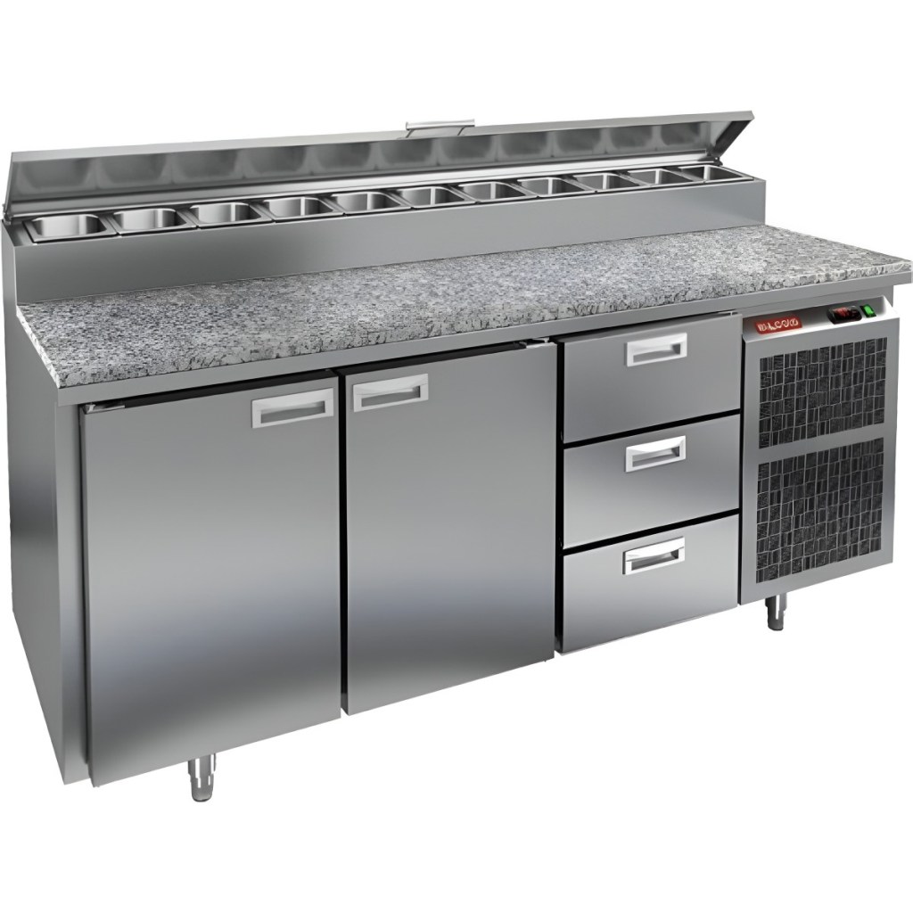 Каталог оборудования Холодильное оборудованиеСтолы охлаждаемыеСтолы холодильные для пиццыСтол холодильный для пиццы HiCold PZ2-113GN (1/6) камень Стол холодильный для пиццы HiCold PZ2-113GN (1/6) камень Код товара: 064-762 Поделиться: WhatsAppTelegram СравнитьДобавить в КПВ избранное 0 292 761 ₽ В корзину 0 шт Под заказСамовывоз сегодня бесплатно Взять в кредит Купить в лизинг Получить консультацию в Max Описание Характеристики Отзывы 0 Инструкции 2 Стол холодильный для пиццы HiCold PZ2-113/GN (1/6) камень предназначен для кухонь и предприятий общественного питания. Он используется для раскатки теста, подготовки ингредиентов для пиццы, салатов и других блюд, а также для охлаждения и кратковременного хранения скоропортящихся продуктов. Модель совмещает гранитную рабочую поверхность и охлаждаемый отсек с 2 дверьми и 3 ящиками, обеспечивая удобный доступ к ингредиентам и эффективное хранение. Особенности: Динамическая система охлаждения для равномерного поддержания температуры Автоматическая оттайка для удобного обслуживания Электронная панель управления для точной настройки параметров Вместительная внутренняя полка формата GN 1/1 (размер 530×325 мм) 2 двери и 3 вместительных ящика для хранения ингредиентов Автоматические доводчики дверей с фиксатором открытого положения Легкозаменяемые магнитные уплотнители для герметичности Открытая агрегатная часть для легкого доступа к компонентам Регулируемые по высоте ножки для устойчивости Гранитная рабочая поверхность глубиной 486 мм и толщиной 50 мм — устойчива к повреждениям, высоким температурам и царапинам Толщина теплоизоляции: 50 мм Максимальная глубина гастроемкостей: 100 мм Вместимость салат-бара: 11 гастроемкости Стол холодильный HiCold PZ2-113/GN (1/6) камень — это надёжный и функциональный стол для пиццы. Он сочетает рабочую поверхность и охлаждаемый отсек, облегчает хранение и подготовку ингредиентов, повышает удобство работы повара и соответствует стандартам профессиональной кухни.Изображение товара, представленного на фото, может отличаться от его фактического вида. Показать все Габаритные размеры1835×700×1000 ммДиапазон рабочей температурыот +2 до +10 °CРасположение агрегатаБоковое Материал столешницыГранитная Тип столаС дверьми и ящиками Тип двериГлухая Объём505 лТип гастроемкостейGN 1/6 Количество дверей2 штКоличество ящиков3 штРазмер полки530×325 ммНапряжение220 ВМощность0,5 кВтТип охлажденияДинамическое Тип оттайкиАвтоматическая Габариты в упаковке2000×850×1140 ммВес нетто172 кгВес брутто248 кгБрендHicoldВсе холодильные столы для пиццы Hicold Оставить отзыв Еще никто не оставил отзыв на этот товар Паспорт на HICOLD PZ2-113/GN.pdfДекларация о соответствии.pdf Ранее просмотрено Под заказ 207 892 ₽ Стол холодильный для пиццы HiCold PZ1-11GN (1/3) камень В наличии 207 892 ₽ Стол холодильный для пиццы HiCold PZ2-11/GN (1/6H) камень