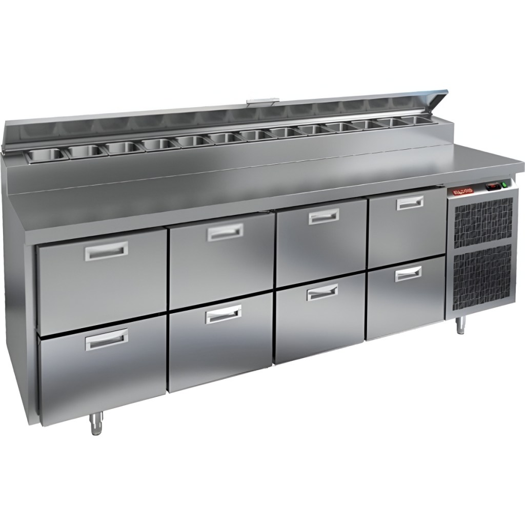 Каталог оборудования Холодильное оборудованиеСтолы охлаждаемыеСтолы холодильные для пиццыСтол холодильный для пиццы HiCold PZ2-2222GN (1/6) Стол холодильный для пиццы HiCold PZ2-2222GN (1/6) Код товара: 064-773 Поделиться: WhatsAppTelegram СравнитьДобавить в КПВ избранное 0 373 042 ₽ В корзину 0 шт Под заказСамовывоз сегодня бесплатно Взять в кредит Купить в лизинг Получить консультацию в WhatsApp Описание Характеристики Отзывы 0 Стол холодильный для пиццы HiCold PZ2-2222GN (1/6) предназначен для кухонь и предприятий общественного питания. Он используется для раскатки теста, подготовки ингредиентов для пиццы, салатов и других блюд, а также для охлаждения и кратковременного хранения скоропортящихся продуктов. Модель совмещает нержавеющую рабочую поверхность и охлаждаемый отсек с 8 выдвижными ящиками, обеспечивая удобный доступ к ингредиентам и эффективное хранение без дверей. Особенности: Динамическая система охлаждения для равномерного поддержания температуры Автоматическая оттайка для удобного обслуживания Электронная панель управления для точной настройки параметров Вместительная внутренняя полка формата GN 1/1 (размер 530×325 мм) 8 выдвижных ящиков для хранения ингредиентов Легкозаменяемые магнитные уплотнители для герметичности Открытая агрегатная часть для легкого доступа к компонентам Регулируемые по высоте ножки для устойчивости Нержавеющая столешница глубиной 486 мм и толщиной 50 мм — устойчива к коррозии, легко моется и гигиенична Толщина теплоизоляции: 50 мм Максимальная глубина гастроемкостей: 100 мм Вместимость салат-бара: 13 гастроемкости Стол холодильный HiCold PZ2-2222GN (1/6) — это надежное и удобное решение для профессиональной кухни. Он обеспечивает легкий доступ к ингредиентам, упрощает хранение и подготовку продуктов и полностью соответствует стандартам предприятий общественного питания.Изображение товара, представленного на фото, может отличаться от его фактического вида. Показать все Габаритные размеры2280×700×1000 ммДиапазон рабочей температурыот +2 до +10 °CРасположение агрегатаБоковое Материал столешницыНержавеющая Тип столаС ящиками Объём660 лТип гастроемкостейGN 1/6 Количество ящиков8 штНапряжение220 ВМощность0,5 кВтТип охлажденияДинамическое Тип оттайкиАвтоматическая Габариты в упаковке2420×850×1080 ммВес нетто208 кгВес брутто240 кгБрендHicoldВсе холодильные столы для пиццы HicoldВсе нержавеющие холодильные столы для пиццы Оставить отзыв Еще никто не оставил отзыв на этот товар Ранее просмотрено Под заказ 278 361 ₽ Стол холодильный для пиццы HiCold PZE1-222GN (1/3)
