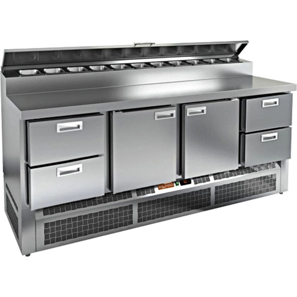 Стол холодильный для пиццы HiCold PZE2-2112/GN (1/6H) предназначен для использования на предприятиях общественного питания и торговли. Он совмещает охлаждаемый объём и удобную рабочую поверхность, обеспечивая повару быстрый доступ к ингредиентам и комфорт при подготовке блюд — от пиццы и салатов до закусок и десертов.