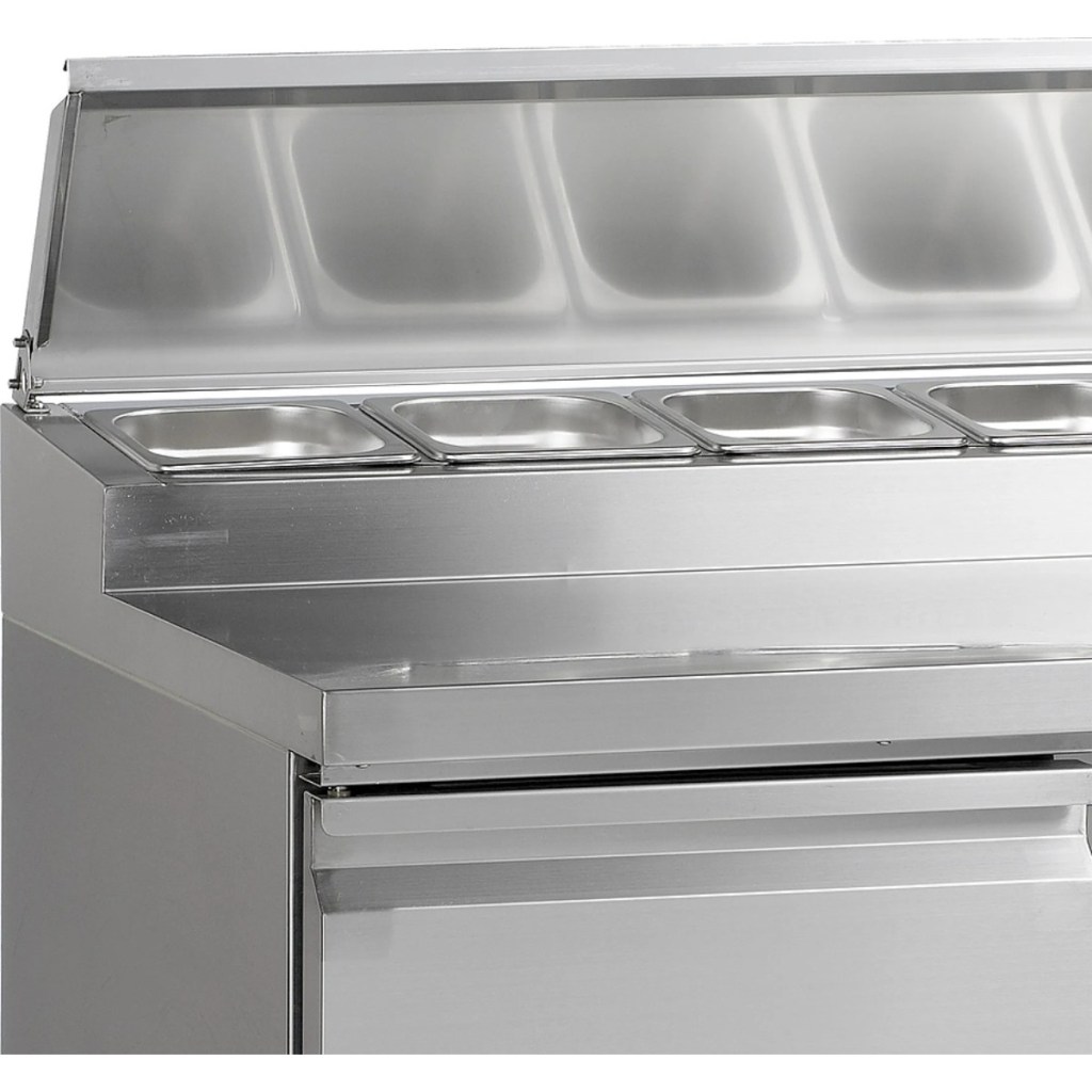 Каталог оборудования Холодильное оборудованиеСтолы охлаждаемыеСтолы холодильные для пиццыСтол холодильный для сэндвичей TEFCOLD SS1435 Стол холодильный для сэндвичей TEFCOLD SS1435 Код товара: 010-226 Поделиться: WhatsAppTelegram СравнитьДобавить в КПВ избранное 0 160 494 ₽ В корзину 0 шт В наличииСамовывоз сегодня бесплатно Взять в кредит Купить в лизинг Получить консультацию в WhatsApp Описание Характеристики Отзывы 0 Стол холодильный для сэндвичей TEFCOLD SS1435 — профессиональное оборудование для обработки ингредиентов, используемых для приготовления сэндвичей, охлаждения и кратковременного хранения продуктов на предприятиях общественного питания и торговли. Корпус и внутренняя отделка выполнены из нержавеющей стали AISI 304, что обеспечивает долговечность и лёгкость ухода. Особенности модели: Статическое охлаждение с вентилятором — равномерное распределение холода Автоматическое размораживание — поддержание стабильной работы без наледи Электронный термостат — точное управление температурой Хладагент R134a, подзарядка — 0,265 кг Самозакрывающиеся двери 3 полки (размер 530×325 мм) Регулируемые по высоте ножки — устойчивость на неровных поверхностях Климатический класс 4 — работа при температуре до +30 °C Полезный объём: 320 л Внутренние размеры камеры: 1295×515× 00 мм Энергопотребление: 2,4 кВт/сутки Уровень шума: 42 дБ TEFCOLD SS1435 — надёжный холодильный стол для профессиональных кухонь и точек общественного питания. Модель сочетает вместительное охлаждаемое пространство, удобные полки и эффективное управление температурой, обеспечивая сохранность ингредиентов и комфорт в работе.Изображение товара, представленного на фото, может отличаться от его фактического вида. Показать все Габаритные размеры1365×700×950 ммДиапазон рабочей температурыот +2 до +10 °CРасположение агрегатаНижнее Материал столешницыНержавеющая Тип столаС дверьми Тип двериГлухая Общий объем348 лПолезный объем320 лКоличество дверей3 штКлиматический класс4 Размер полкиGN1/1 ммНапряжение230 ВРасход электроэнергии в сутки2,4 кВт/сутТип охлажденияСтатическое Тип оттайкиАвтоматическая ХладагентR134a Уровень шума42 дБГабариты в упаковке1400×770×1170 ммВес нетто118 кгВес брутто128 кгБрендTefcold Оставить отзыв Еще никто не оставил отзыв на этот товар Похожие товары Перейти в каталог В наличии 103 814 ₽ Стол холодильный среднетемпературный Polair ТМ2GN-G В наличии 77 661 ₽ Стол холодильный среднетемпературный HiCold GN 11/TN W В наличии 89 704 ₽ Стол холодильный среднетемпературный Cooleq S903 TOP S/S С этим товаром покупают Под заказ 130 069 ₽ Шкаф холодильный Abat ШХ-0,7-02 В наличии 58 095 ₽ Витрина холодильная для ингредиентов HICOLD VRTU 1835 1/3 Ранее просмотрено В наличии Цена по запросу Стол холодильный для пиццы TEFCOLD PT1365
