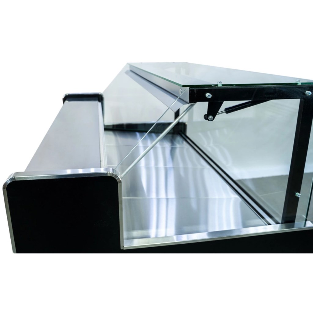 Каталог оборудования Холодильное оборудованиеВитрины холодильныеВитрины холодильные среднетемпературные от 0 до +5 °СВитрина холодильная Ангара 3 КУБ 1,0 динамика Витрина холодильная Ангара 3 КУБ 1,0 динамика Код товара: 066-477 Поделиться: WhatsAppTelegram СравнитьДобавить в КПВ избранное 0 82 300 ₽ В корзину 0 шт В наличииСамовывоз сегодня бесплатно Взять в кредит Купить в лизинг Получить консультацию в WhatsApp Описание Характеристики Отзывы 0 Витрина холодильная Ангара 3 КУБ 1,0 динамика предназначена для демонстрации и кратковременного хранения пищевых продуктов. Витрина поддерживает заданную температуру предварительно охлаждённых продуктов и гармонично вписывается в оформление торгового зала или открытой площадки. Особенности: Динамическое охлаждение с равномерным распределением воздушных потоков по всей камере Встроенный компрессорный холодильный агрегат Embraco Aspera или Secop (Danfoss) Надёжный микродвигатель EBM-PAPST Ударопрочное прямое лобовое стекло и боковые стекла толщиной 6 мм Материалы: поверхность выкладки – нержавеющая сталь, подтоварники – оцинкованная сталь с полимерным покрытием, столешницы – нержавеющая сталь Вместительный подтоварник для хранения продукции Автоматическое оттаивание испарителя с отводом талой воды в ёмкость в агрегатном отсеке Электронное управление температурой через блок Elitech ETC-974 (2 датчика, усиленное реле) Равномерное распределение температуры по объёму камеры без образования льда и инея Светодиодное LED-освещение – яркое, экономичное, с низким тепловыделением; включается кнопкой на панели управления Автомат IEK для надёжного включения/выключения витрины Ровное расположение витрины благодаря регулируемым опорам, правильный сбор конденсата и бесшумная работа Хладагент – экологичный и нетоксичный R-134a, R-404a Испаритель SEST LUVE от итальянского производителя Комплектация: с подтоварником и электронным блоком управления Температура окружающей среды: +12…+35 °C Ангара 3 КУБ 1,0 – надёжная и компактная витрина для демонстрации и хранения предварительно охлаждённых продуктов. Обеспечивает равномерное охлаждение, яркое LED-освещение и автоматическое оттаивание, что делает её отличным решением для магазинов, гастрономий и открытых торговых площадок.Изображение товара, представленного на фото, может отличаться от его фактического вида. Показать все Габаритные размеры1020×1150×1300 ммДиапазон рабочей температурыот 0 до +5 °CПлощадь выкладки0,77 м²Длина1020 ммГлубина1150 ммВысота1300 ммНоминальная мощность162 ВтРазмер выкладки820 ммПолезный объем180 лХолодообеспечениеВстроенное Тип охлажденияДинамическое Тип оттайкиАвтоматическая Температура эксплуатацииот +12 до +35 °CПодсветкаЕсть ХладагентR134a, R404a Напряжение220 ВРасход электроэнергии в сутки3,9 кВт/сутГабариты в упаковке1200×1500×1200 ммОбъём (брутто)2,16 м³Вес нетто190 кгВес брутто270 кгБрендАнгараВсе витрины холодильные среднетемпературные от 0 до +5 °С 1,0 м Оставить отзыв Еще никто не оставил отзыв на этот товар Ранее просмотрено В наличии 77 500 ₽ Витрина холодильная Ангара 1 - 2,0