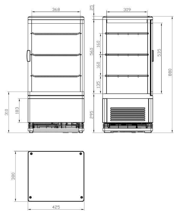 Каталог оборудования Холодильное оборудованиеВитрины настольныеВитрина холодильная настольная Cooleq CW-70 BLACK Витрина холодильная настольная Cooleq CW-70 BLACK Код товара: 065-642 Поделиться: WhatsAppTelegram 0 Цена по запросу Получить консультацию в WhatsApp Описание Характеристики Отзывы 0 Инструкции 3 Витрина холодильная настольная Cooleq CW-70 BLACK предназначена для демонстрации, охлаждения и кратковременного хранения напитков и продуктов на предприятиях общественного питания и торговли. Компактная модель отличается современным дизайном в чёрном цвете, оснащена LED-подсветкой для привлекательной презентации, регулятором температуры и замком для безопасности. Три регулируемые по высоте хромированные полки позволяют удобно организовать внутреннее пространство. Особенности: Динамическое охлаждение для равномерного распределения температуры. Закрываемая на ключ дверь. Хладагент: R600a, количество — 40 г. Климатический класс: 4. Размер полок: 365×307 мм, регулировка по высоте. LED-подсветка для улучшенной демонстрации продукции. Цвет корпуса: чёрный. Cooleq CW-70 BLACK — это стильная и функциональная холодильная витрина, которая сочетает компактность, удобство эксплуатации и современный дизайн, делая продукцию более привлекательной для покупателей.Изображение товара, представленного на фото, может отличаться от его фактического вида. Показать все Габаритные размеры428×386×885 ммДиапазон рабочей температурыот +0 до +12 °CДлина428 ммГлубина386 ммВысота885 ммРазмещениеВертикальная Полезный объем витрины0,068 м³Тип охлажденияДинамическое Климатический класс4 ХладагентR134a Номинальная потребляемая мощность0,18 Напряжение220 ВТип оттайкиАвтоматическая Количество полок3 штГабариты в упаковке475×447×986 ммВес нетто32 кгВес брутто35 кгБрендCooleqВсе витрины холодильные настольные CooleqВсе холодильные настольные витриныВсе витрины настольные для выпечкиВсе настольные витрины для десертовВсе стеклянные настольные витриныВсе вертикальные настольные витрины Оставить отзыв Еще никто не оставил отзыв на этот товар Инструкция на Cooleq CW-70 BLACK.pdfСхема Cooleq CW-70.jpgДекларация о соответствии.pdf Похожие товары Перейти в каталог В наличии 70 625 ₽ Витрина холодильная настольная HURAKAN HKN-UPD100 Под заказ 84 096 ₽ Витрина холодильная настольная HURAKAN HKN-UPD108 В наличии 35 441 ₽ Витрина холодильная настольная HURAKAN HKN-UPD58 В наличии 57 142 ₽ Витрина холодильная настольная TEFCOLD UPD80 BLACK черная С этим товаром покупают В наличии 103 417 ₽ Шкаф холодильный МХМ Капри 0,7М Ранее просмотрено В наличии Цена по запросу Витрина холодильная настольная Cooleq CW-160S В наличии Цена по запросу Витрина холодильная настольная Cooleq CW 58 BLACK